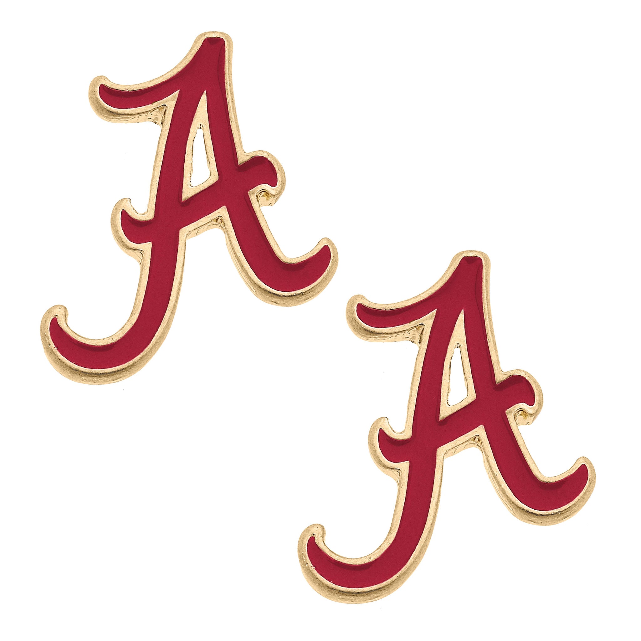 Alabama Crimson Tide Enamel Logo Stud Earrings in Shiny Gold