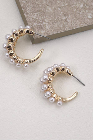 The "Double Row Pearl Hoop Earrings" combine classic elegance with a modern twist. Featuring a double row of lustrous pearls along the hoop, these earrings offer a sophisticated and refined look. The pearls add a touch of timeless beauty, while the hoop design introduces a contemporary and stylish element.