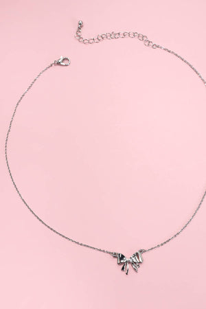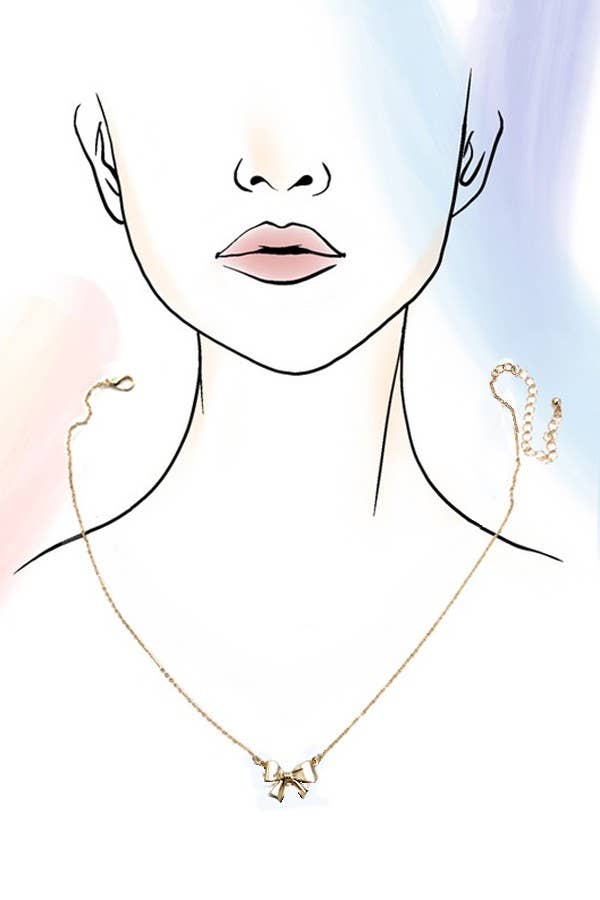 Mini Bow Ribbon Necklace, a dainty and charming piece that adds a touch of sweetness to your jewelry collection. This necklace features a petite bow ribbon design, capturing the essence of elegance and femininity in a delicate package. The mini bow pendant is crafted with meticulous attention to detail, showcasing the intricacies of a tied ribbon. Product Details: length: 15" charm: .75" ext: 3" Ball Chain Ext clasp: Lobster Claw metal finish: Gold Plated product: Lead & Nickel Compliant anti-tarnish: Double E-coating