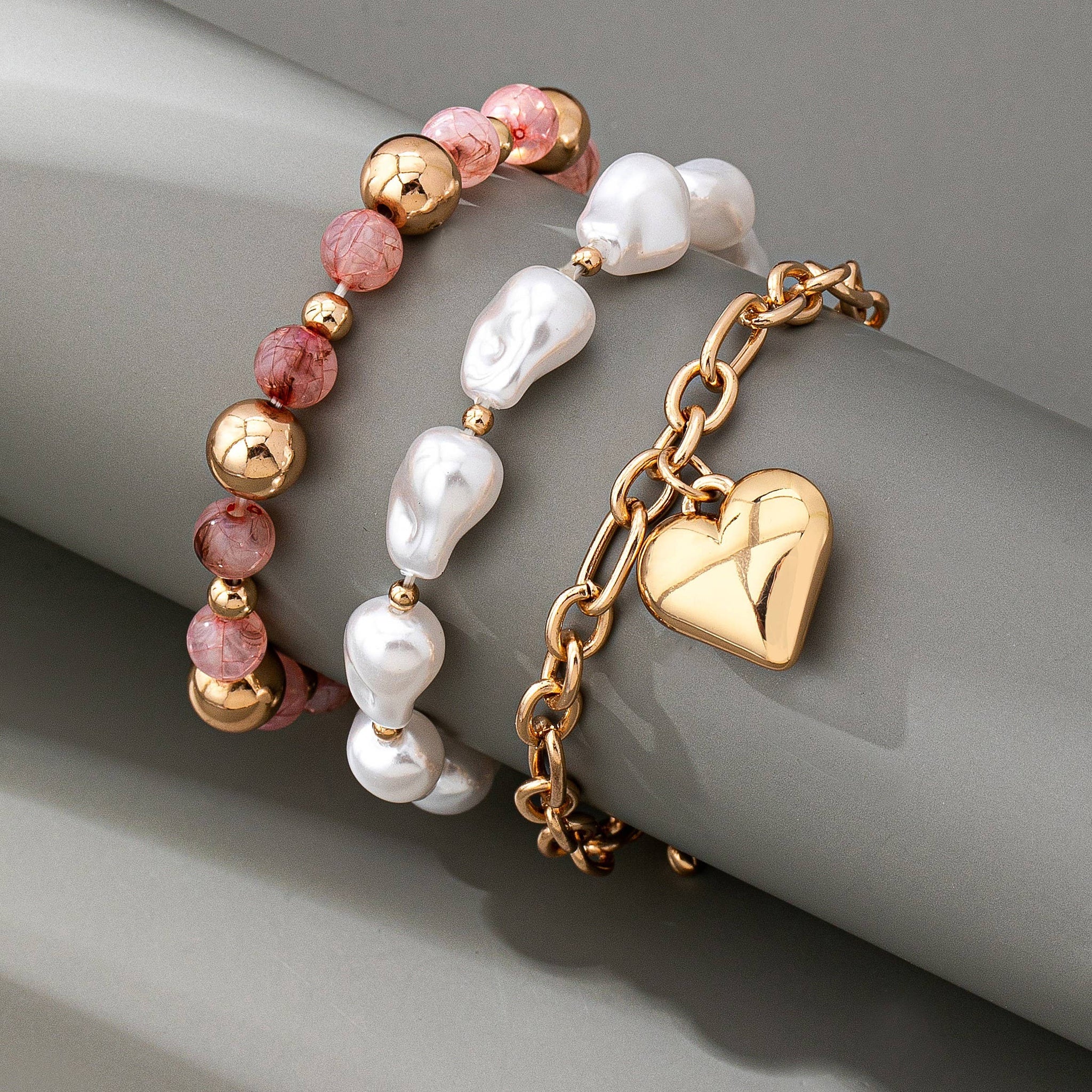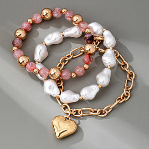 MULTI LAYER MIXED PEARL BEAD HEART CHARM BRACELET