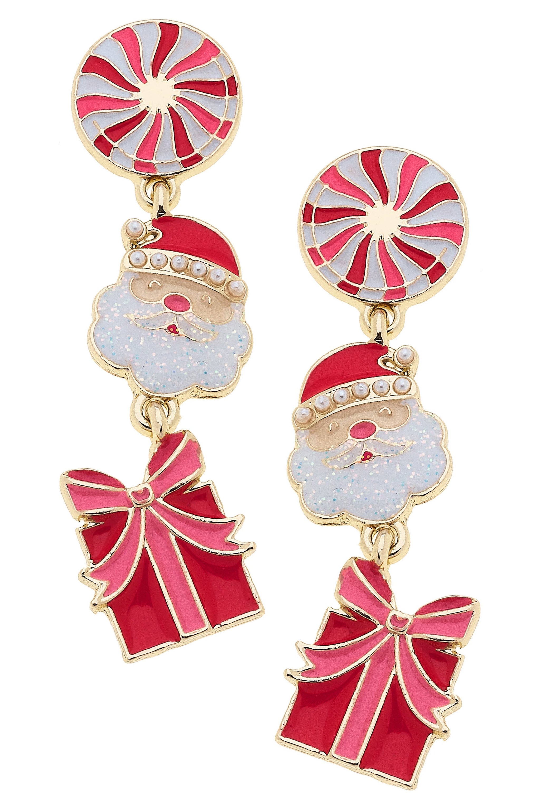 Spread holiday cheer with these playful enamel earrings. Santa’s on his way—and so is the style. DETAILS: 18K Triple Gold Plated 2.25"L x .5"W