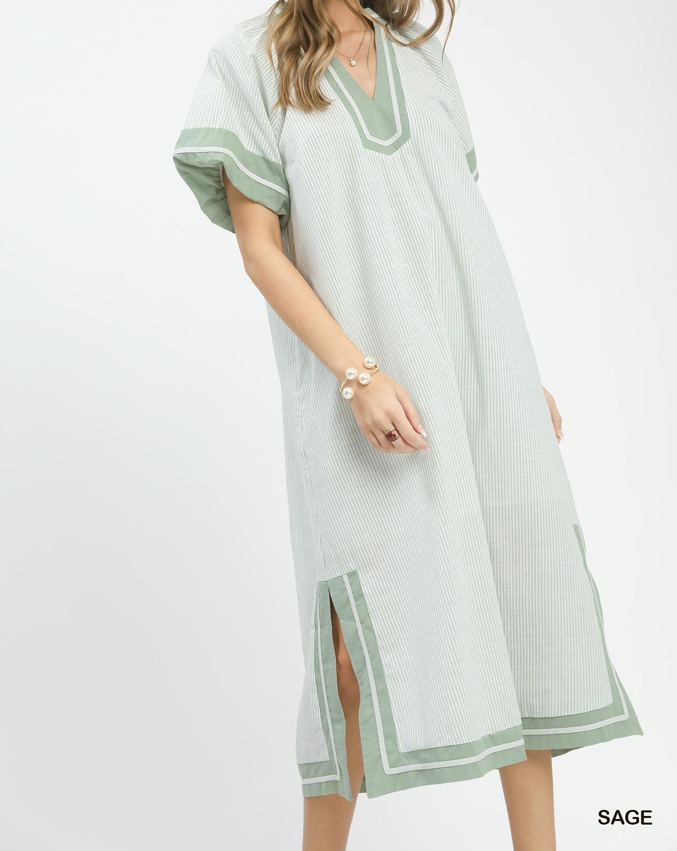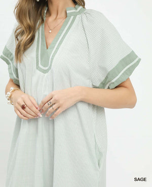 Pinstripe Contrast Trim Midi Dress