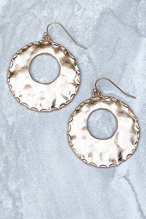 hammered flat oval earring with "O-shaped" cutout in center Diameter:1.5"