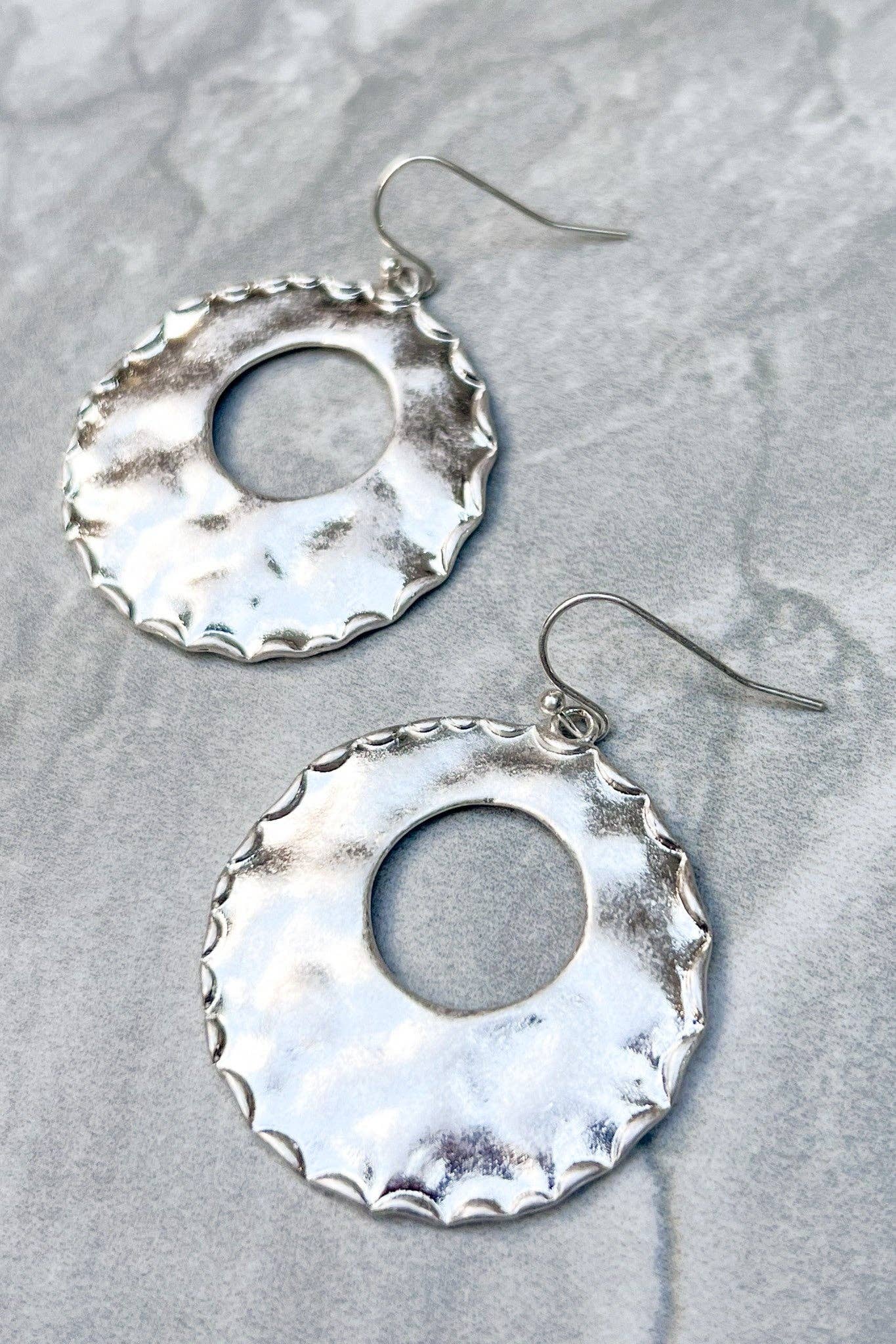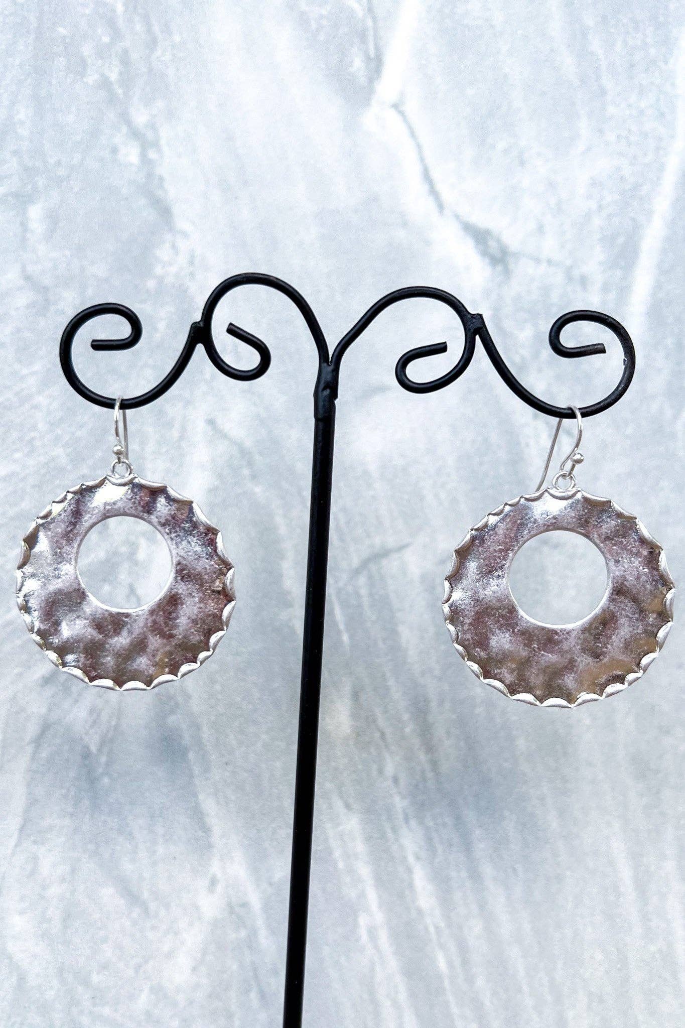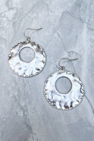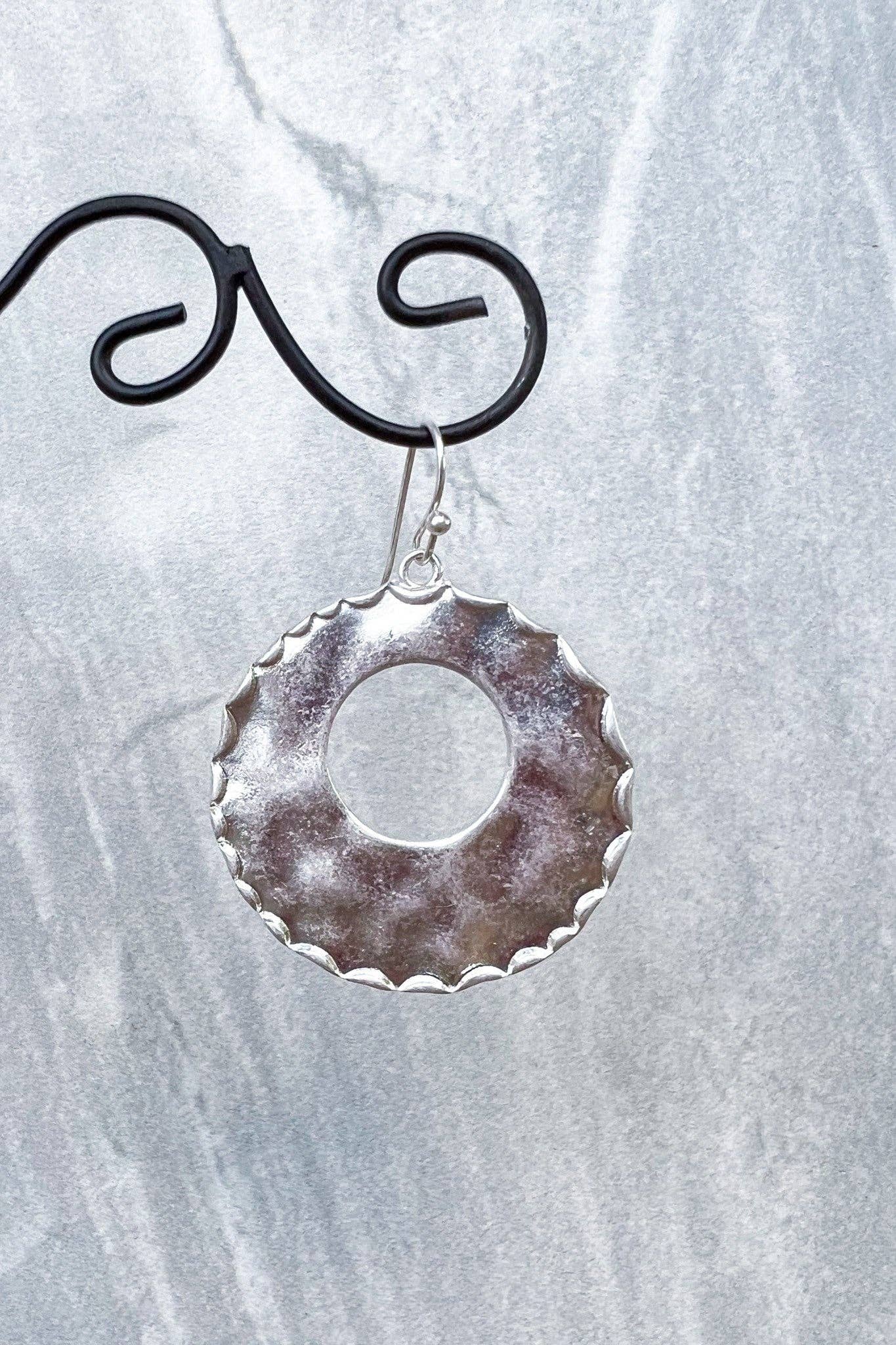 hammered flat oval earring with "O-shaped" cutout in center Diameter:1.5"
