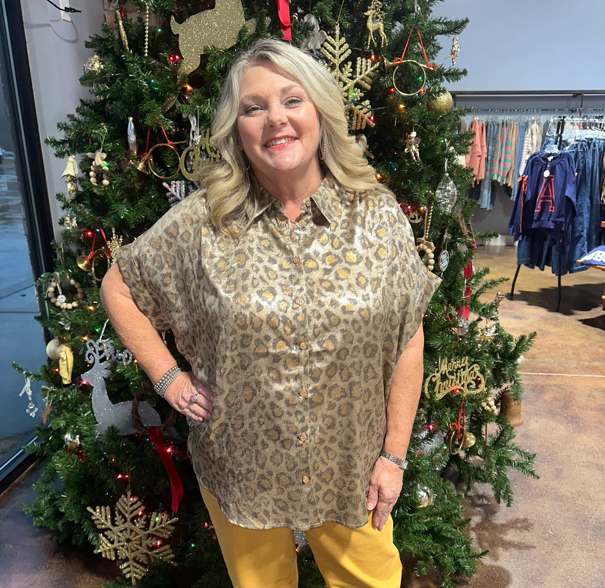 Plus leopard print collard button up top